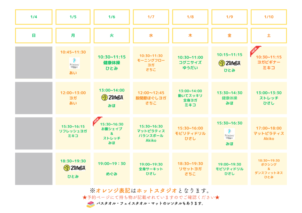 1/5~1/17 レッスンスケジュール公開!
